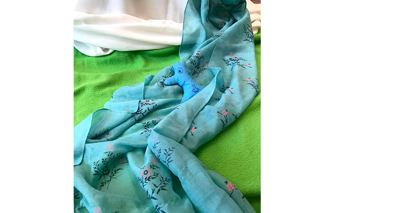 Голубая, желтая, зеленая и белая ткани для обозначения ландшафта