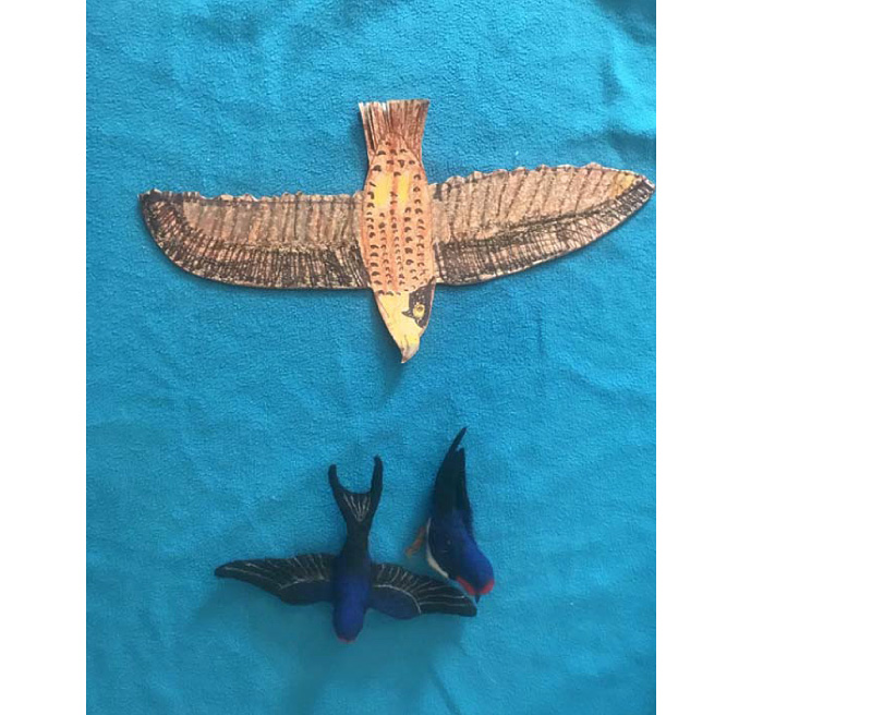 Мы также использовали цветные ткани, фигурки африканских животных и нашего живого домашнего кота, а хищного сокола сделали из куска картона (так можно сделать и ласточек с птенцами).