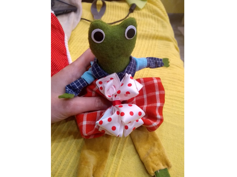 Для спектаклей и игры в Квака и Жаба я сшила две куклы с подвижными конечностями из остатков тканей. Так как главным для меня была игра, я не увлекалась детализацией кукол и старалась, чтобы их создание не заняло у меня много времени. Но при этом куклы выполнены в одном стиле: у них подвижные длинные конечности и одинаковые глаза.