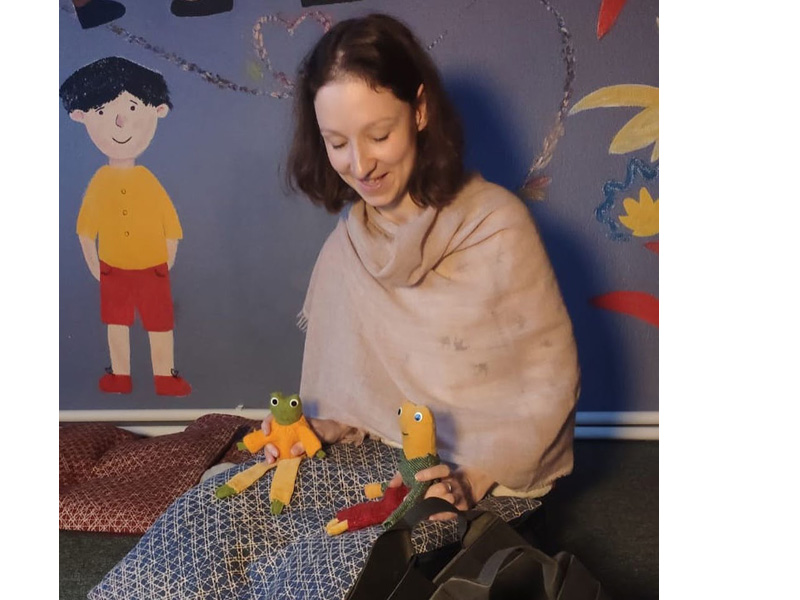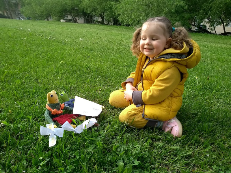 Мы разыграли и другие истории из книг серии про Квака и Жаба. Прекрасная «Сказка» из сборника «Пуговица» не требовала дополнительного реквизита или персонажей. Достаточно лишь Квака и Жаба.
