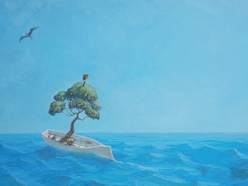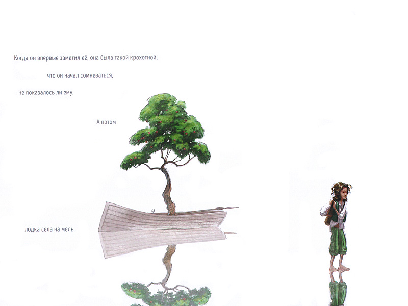 ‒ Как ты думаешь, почему художник нарисовал корни яблони, которые выбрались из лодки и ушли в землю? – спросила я. – Мальчик останется на берегу, построит себе какой нибудь шалаш?
