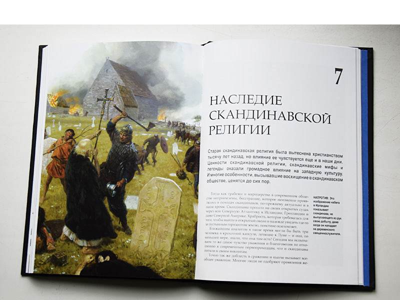 Она похожа на энциклопедию или на своеобразный иллюстрированный путеводитель: очень много иллюстраций – фотографии, гравюры, изображения артефактов, а текст скорее дополняет и раскрывает для читателя то, что изображено. Мне кажется, так легче сориентироваться в достаточно сложной, многоуровневой мифологии древних викингов.