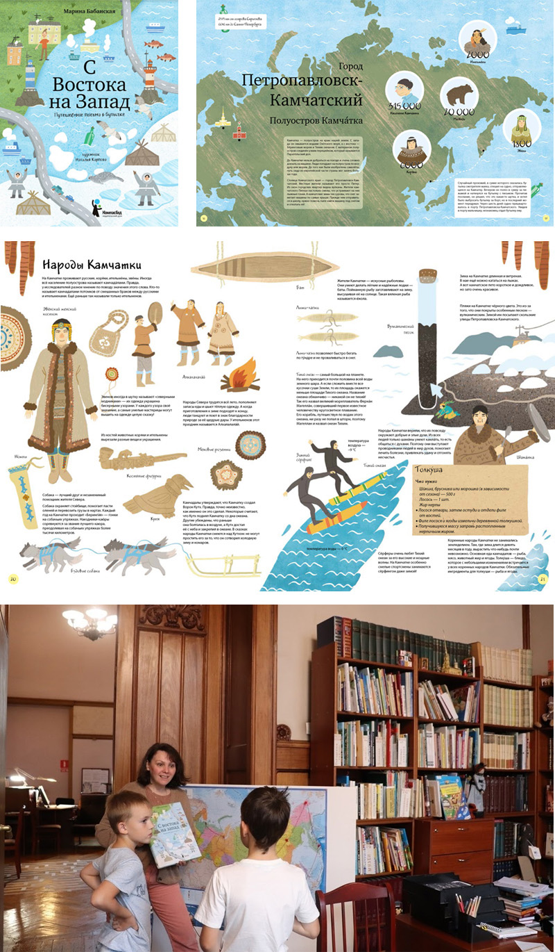 На этом фоне очень заметны книги, ставшие значимыми исключениями из «москвоцентричного» письма о России. Это, во-первых, книга Марианны Бабанской «С востока на запад» (подробнее о ней– в статье Е.Литвяк: «Россия в письмах»). Уже в самом названии заложено «другое направление». Изучение России начинается не с Москвы, а с Дальнего Востока. Книга построена на письмах детей – наших современников. Они умеют пользовать сотовыми телефонами, интернетом и телевизором, но при этом готовы писать письма и рассказывать о своих городах и сёлах. Письма они адресуют на сахалинский маяк Скрыпалева, а начало и конец этой истории – в Санкт-Петербурге. В 2021 году сотрудники Детской библиотеки истории и культуры Санкт-Петербурга придумали игровое занятие по этой книге, во время которого дети работают с картами, путеводителями, сами пишут письма и ищут информацию. И это им невероятно интересно.