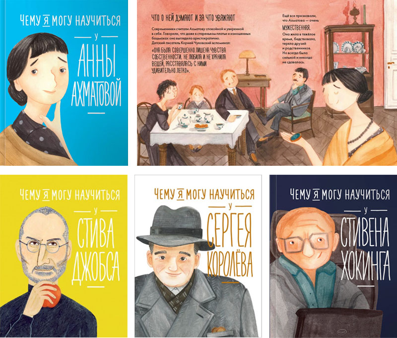 Между тем давно установлено, что историческое сознание начинает формироваться у детей только после 10 лет. Далеко не у всех история – любимый предмет. И детям, и подросткам интересна прежде всего современность. Они живут здесь и сейчас; лучший способ увлечь детей историей – показать ее связь с сегодняшним днём. Я не раз своими глазами наблюдала живейший интерес, который вызывают у детей книги о современниках – например, серия издательства «Альпина Паблишер» «Чему я могу научиться…» В ней представлены книги о Стиве Джобсе, Илоне Маске, Ингваре Кампраде, Филе Найте. Из российских имён есть лишь Анна Ахматова и Сергей Королев, чьи жизни завершились полвека назад.