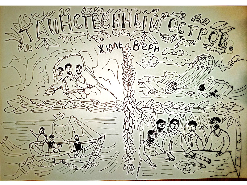 Александра Меркина, 11 лет, г. Санкт-Петербург, обладатель диплома «Книжный график XXI века», представляет обложку книги Жюля Верна «Таинственный остров».