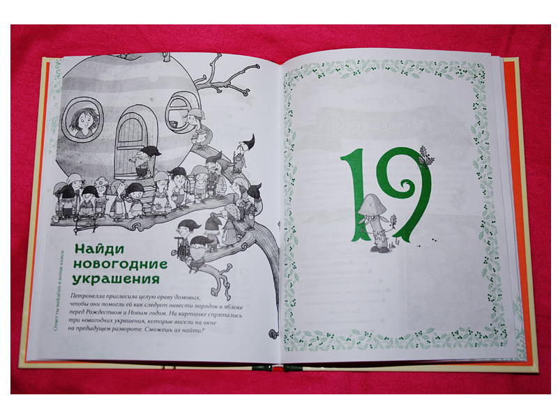 Но в этом году я не смогла пройти мимо книги Сабины Штэндинг «Петронелла и Новый год». Во-первых, мы уже знакомы с очаровательной маленькой ведьмой и ее друзьями. Во-вторых, все книги о ней, которые есть у нас дома, то есть пять из восьми, сын неоднократно перечитывал. В-третьих, она удачно сочетает в себе адвент-календарь, сборник историй и activity book.