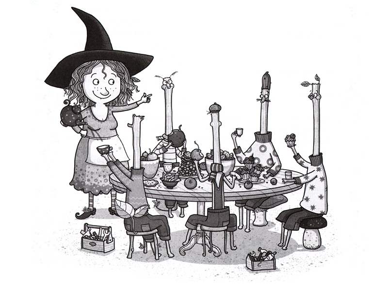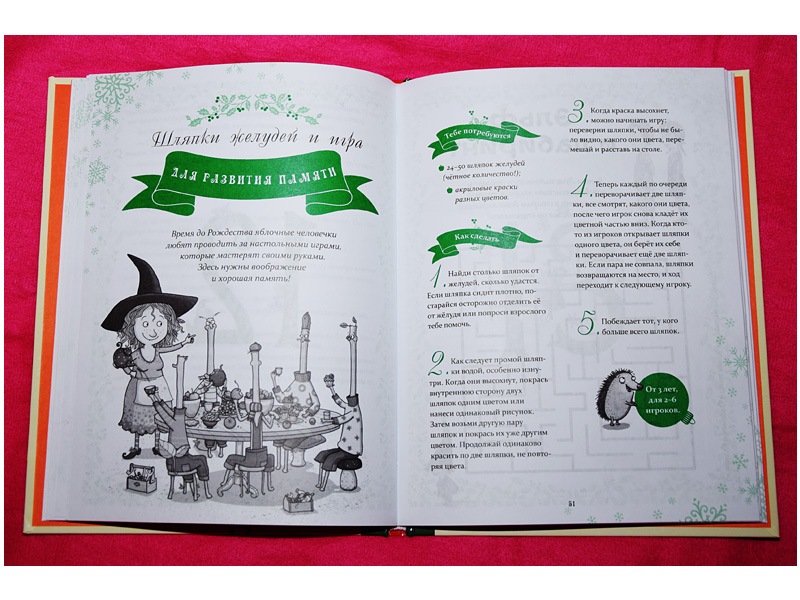 И еще здесь много рецептов выпечки и рождественских лакомств. Да, с духовкой нужна будет помощь взрослых, но вот работа с пропорциями продуктов и с замешиванием теста уже видится вполне посильной задачей. Кстати, мы уже готовили вкусные штучки, руководствуясь детской литературой: делали хлеб по рассказам Марьолейн Бастин о мышке Вере и пекли печенье, рецепт которого был дан в книге Мег Розофф о Мактавише. Так что помощь ведьмы с яблоневого дерева для нас — шаг вперед в постижении кулинарного искусства.