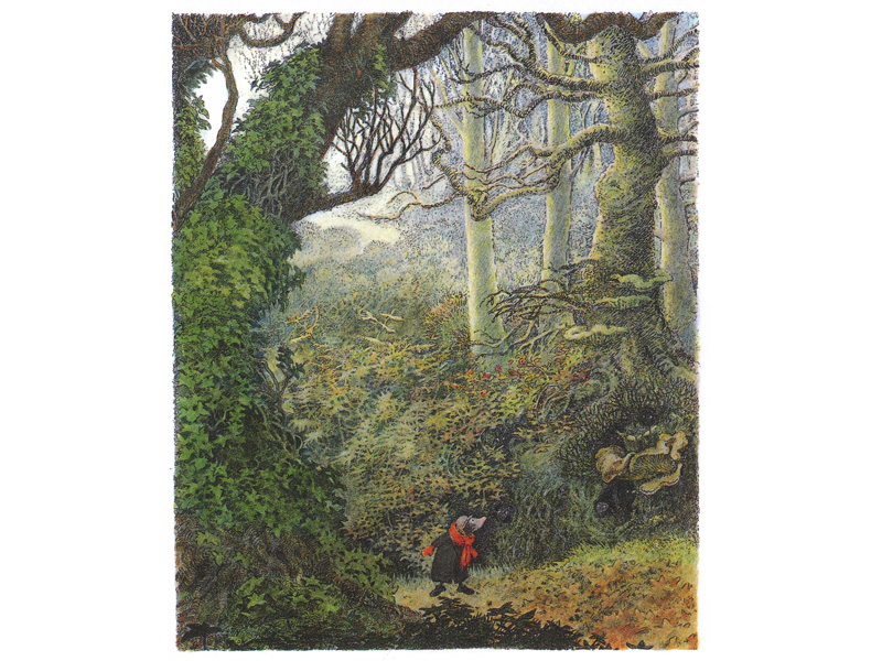 Затем, теряясь в Дремучем Лесу, по отношению к которому он испытывает одновременно и жгучий интерес, и страх, Крот знакомится с Барсуком – храбрым и сильным зверем, любящим уединение и живущим в большом доме в самой середине леса. Несмотря на свою нелюдимость и внешнюю суровость, Барсук очень отзывчив и добр, всегда готов приютить и обогреть заблудившегося путника и помочь ему в решении его проблем.
