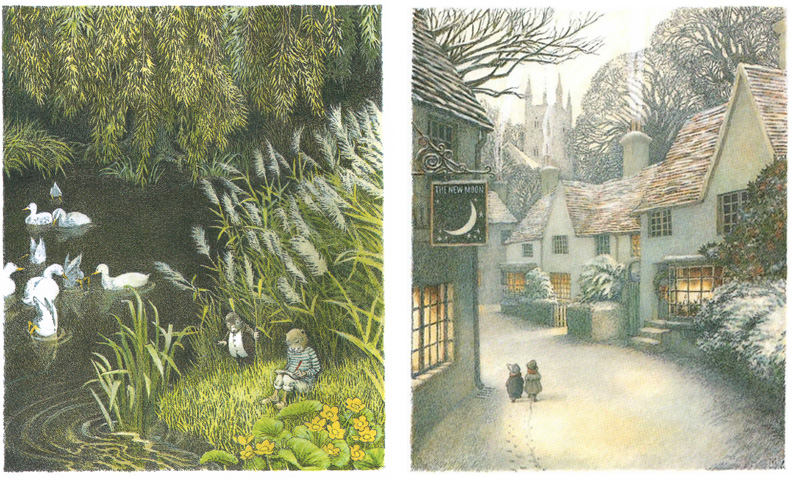 Хорошая детская сказка немыслима без картинок, поэтому важно сказать об иллюстрациях в моем издании «Ветра в ивах». На каждой странице книги глаз радуют замечательные работы английской художницы Инги Мур. Все рисунки невероятно красивы, воздушны и абсолютно точно передают описания чудесного мира и приятную атмосферу сказки. Пейзажи очаровывают, красота природы поражает, а зверьки умиляют. Каждая травинка, каждый листочек прорисованы детально. Иллюстрации замечательно передают сюжет, красоту и живость текста. Сама Инга Мур говорила, что, рисуя сказочный мир и животных, она как бы вживалась в каждого персонажа и представляла себя на его месте. Сравнивая с другими изданиями, я прихожу к выводу, что иллюстрации Инги Мур самые удачные, так как они лучше всего передают чудесный мир природы, с ее неспешным ритмом, сменами времен года и мудростью.