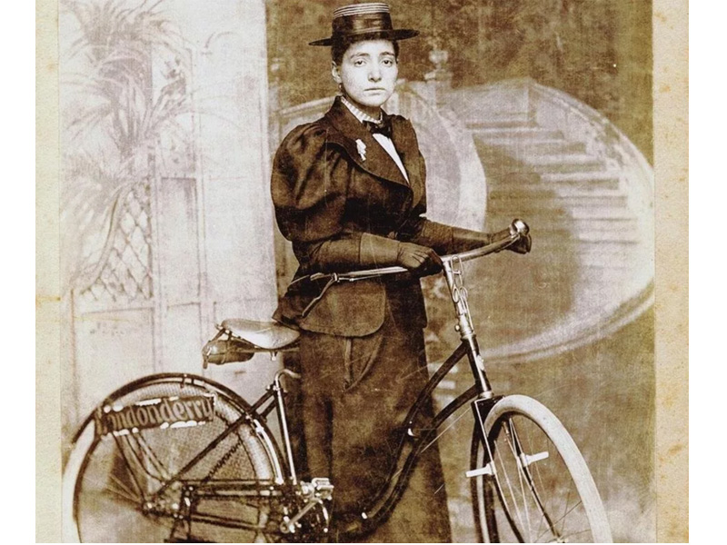 Annie’s contract included a condition that she couldn’t use any money sent to her from home during her trip. She intended to make money by selling photographs. Luckily, she was surrounded by businessmen who saw in her an interesting figure they could use for advertising. Not only did they buy all her pictures, but they offered that she become the face of the Londonderry spring water brand. A designer named Smith sewed her a comfortable bicycle suit and gave her a new bicycle. He named her first bicycle “Annie” and put it on display in his studio, as part of a successful advertising campaign for his women’s bicycle suits.