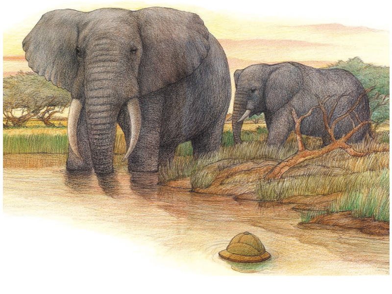 But here’s what’s interesting. The field notes Emma took on plants and animals throughout the journey were quite real and scientifically true. The family structure of African gorillas, the consequences of the mass extermination of bison by white colonizers of North America, how crocodiles raise their young, how tapirs avoid jaguars, the migration of tropical butterflies, facts about whales, elephant seals, penguins, and musk oxen…. The young reader watches a colorful, diverse picture of the animal world unfold before her on the pages of the novel, and the adventure-story format makes the experience a lasting impression. The child simply follows the plot, with no particular aim of learning, and so remembers everything. Graham Percy’s bright illustrations on nearly every page are an excellent visual aid.