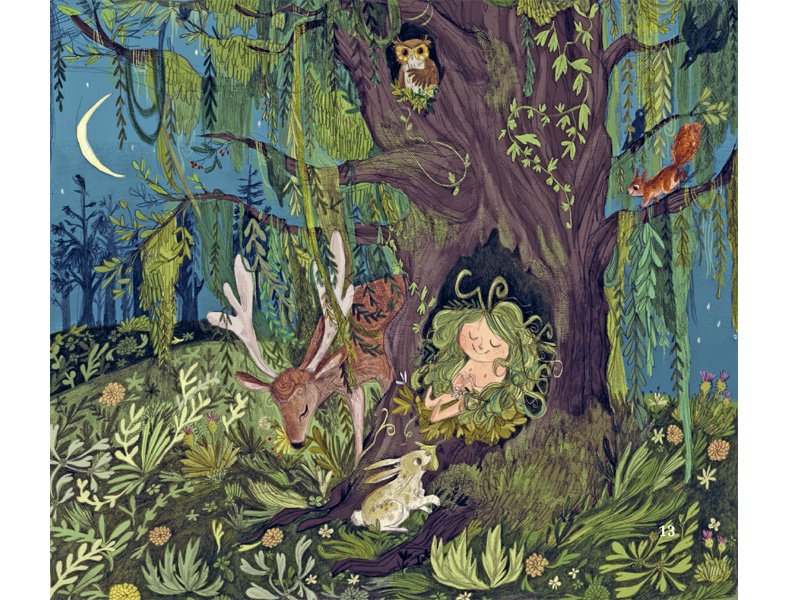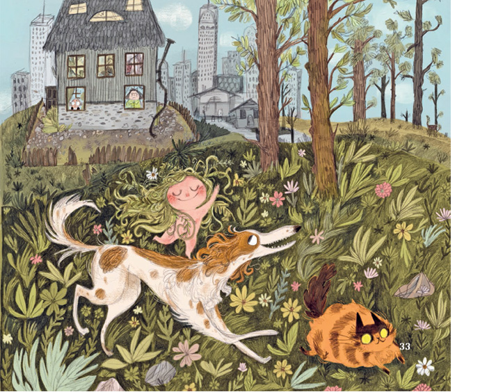 Уходя от людей, девочка берет с собой в лес собаку и кота ‒ как нам с сыном показалось, в благодарность за то, что они были с ней рядом в трудные минуты.