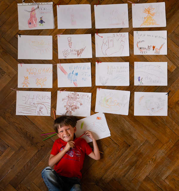 Я упаковала три коробки бумажных книг и одну – с самодельными книгами детей. Самый шустрый написал семнадцать штук, каждая с рисунками и текстом, прошита и пронумерована.