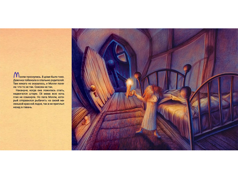 Когда ты девочка, тебе чаще всего нравятся книги о других девочках. Когда ты не очень большая девочка в окружении четырех братьев, такие книги становятся жизненной необходимостью. Вот почему я постоянно выбираю для моей шестилетней дочки Лизы книги о ее ровесницах. Разные страны, разные эпохи – но часто такие похожие переживания, когда что-то печальное происходит с любимой игрушкой или жизнь ставит тебя перед необходимостью преодолеть страх темноты (одиночества, большой собаки и т.п.). Вот и чувства девочки Молли, живущей где-то далеко от нас на рыбачьем острове в море, оказались нам с Лизой понятными и близкими.