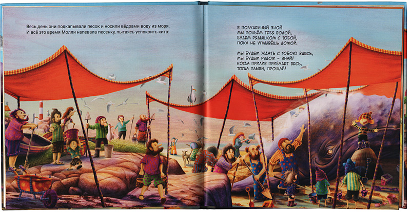 Но точка сближения все же нашлась. Дело в том, что в течение этого трудного и для кита, и для жителей деревни дня Молли сочинила незамысловатую, но очень добрую песню, которую постоянно пела киту, чтобы поддержать его: