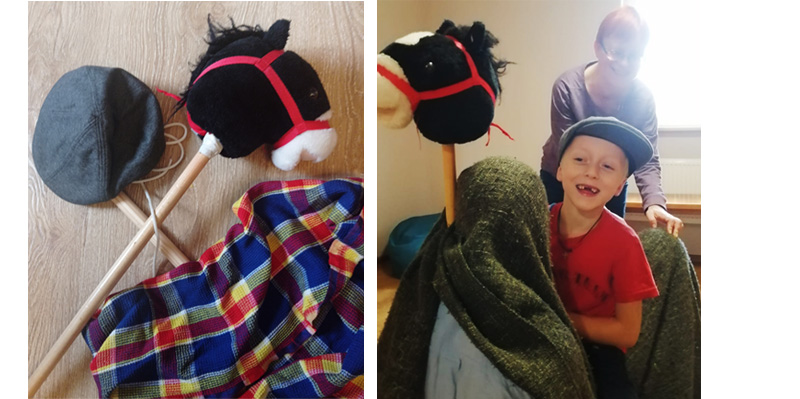 И, наконец, финал, «3 ОКТЯБРЯ. ЯРМАРКА». В самой большой комнате мы приготовили лошадку на палочке, плед, кепку, кусок толстой веревки и короткую круглую палку. Как все это мог использовать Эмиль на ярмарке? Игроки совещались совсем недолго. Через минуту все было готово. Привязали веревку к палке, изобразив знаменитый ружарик, кепка была водружена на голову имениннику, став кепариком Эмиля, а лошадка на палочке превратилась в настоящего коня, которого можно было оседлать и помчаться. Двое игроков, накрывшись пледом, стали его ногами и крепкой спиной, а головой была, конечно, голова игрушечной лошадки. Кстати, не так -то просто было соорудить всю эту конструкцию и удержать от распада. А самое сложное было сделать так, чтобы лошадь поскакала с седоком на спине. Но после нескольких попыток, потребовавших согласования и совместных усилий, все получилось! И каждый побыл немножко Эмилем, с кепариком и ружариком, верхом на гривастом Лукасе. А я в очередной раз порадовалась неистощимости детской фантазии, способности к сотрудничеству и погружению в книгу буквально всем своим существом.