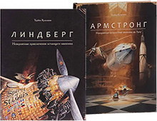 5. Торбен Кульманн «Линдберг. Невероятные приключения летающего мышонка». Иллюстрации автора. Перевод с немецкого Татьяны Зборовской; Торбен Кульманн «Армстронг. Невероятное путешествие мышонка на Луну». Иллюстрации автора. Перевод с немецкого Юлии Сметаниной. – Издательство «Поляндрия», 2016