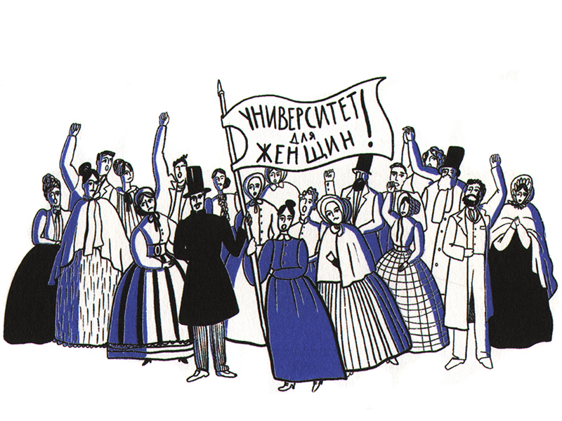 Первыми студентками стали смелые женщины, они приходили на лекции, пользуясь тем, что в уставах университетов женщинам не запрещалось посещать занятия. Но многие преподаватели и мужчины-студенты считали, что женщины не способны учиться. И в 1863 году появился новый устав для университетов, запрещающий женщинам получать высшее образование. Самые отважные женщины решились продолжить учиться за границей. Но борьба за женское образование в России не прекратилась.