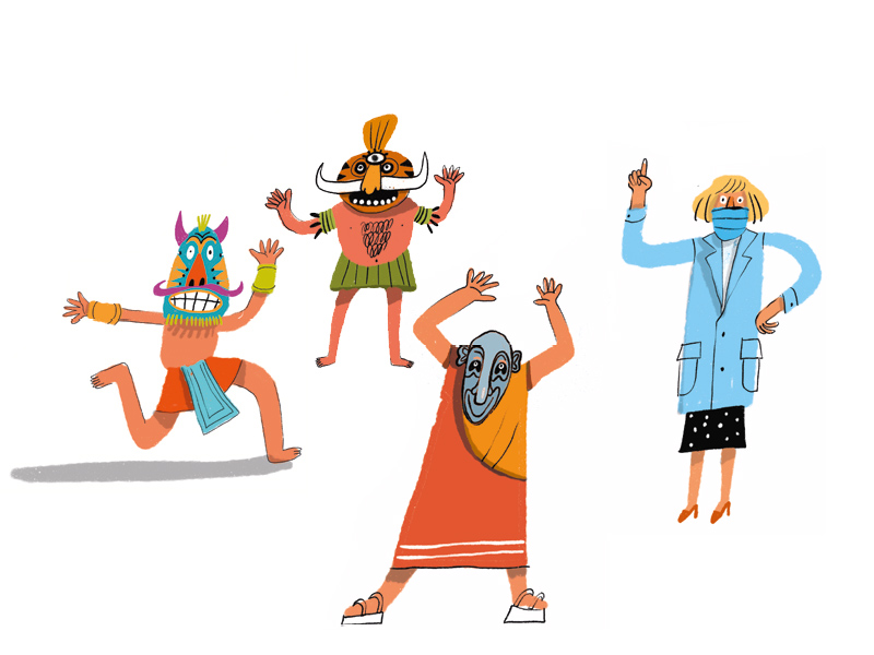 Когда два года назад была объявлена пандемия, все люди в нашем городе стали носить на лице маски. Но носить простые белые медицинские маски мне было неинтересно и неприятно. И тогда мама купила нам с братом и себе много разных весёлых масок с рисунками: мордочки разных зверей (котов, тигров и собак), яркие узоры, цветы. Было очень здорово носить такие маски. Часто другие люди, видя наши маски-«мордочки», улыбались: это поднимало им настроение. Но не все маски предназначены веселить окружающих. Маски создавали и создают, чтобы вызывать всевозможные эмоции и у тех кто их носит, и у тех, кто на них смотрит. Книга Павла Боева и художницы Алисы Юфы «Маски и их истории» рассказывает как раз об этом.