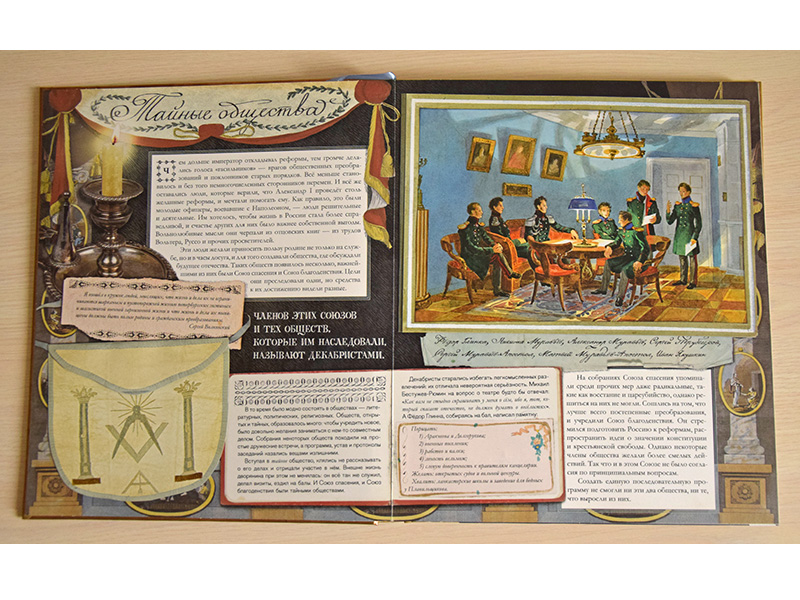 Я прочитал немало книг про декабристов. Но, безусловно, самая объемная по содержанию и наполненная разнообразным историческим материалом – интерактивная книга Любови Новицкас «Декабристы» (издательство «Лабиринт-пресс»). Эта книга не только про самих декабристов, их жизнь до восстания и потом в ссылке, но и про общественный и государственный строй России в 19-м веке, про сословия, порядки в обществе, царствующих императоров и их семьи.