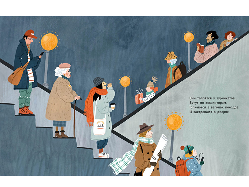 «Это метро. В нем так много людей! Каждый день они едут на работу. А потом с работы. Или просто по делам или на прогулку». Так начинается книга Ирины Зартайской «Медведь в метро».