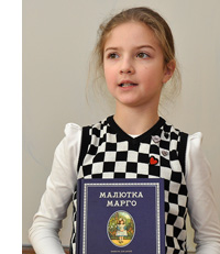 Моя книжка называется «Малютка Марго». Ее написала Лидия Чарская. В ней рассказывается о том, как маленькая девочка и ее мама из Парижа поехали в Россию. А потом им надо было ехать в другой город, где мама нанималась гувернанткой в один богатый дом. Но случилась катастрофа. Когда поезд остановился на платформе, девочка выбежала, чтобы купить землянику. И так как она говорила только по-французски, она не могла объяснить, что хочет купить землянику. И девочка, которая ее продавала, подумала, что она хочет у нее ее просто отнять, и убежала в деревню. А Малютка погналась за ней. И когда она вернулась на платформу, оказалось, что поезд уехал. И она сообщила женщине, которая говорила по-французски, что поезд уехал. Женщина взяла ее к себе и хотела на следующий день отвезти девочку на следующую платформу, куда должен был прибыть поезд. Но оказалось, что поезд потерпел крушение. Когда мама Малютки увидела, что поезд тронулся, а Малютки нет, у нее был шок, и она потеряла сознание. А сразу после этого было столкновение двух поездов, и некоторые люди умерли. Когда Малютка приехала на платформу, оказалось, что ее мама тоже умерла. А вместе с ее мамой ехала одна женщина, которая была учительницей, но она хорошо знала французский. И она взяла Малютку с собой, в деревню, где была учительницей, чтобы Малютка адаптировалась. И Малютка подружилась там с одной девочкой, Нюрой, она была дочкой священника. Малютку все полюбили. И никто уже не хотел, чтобы