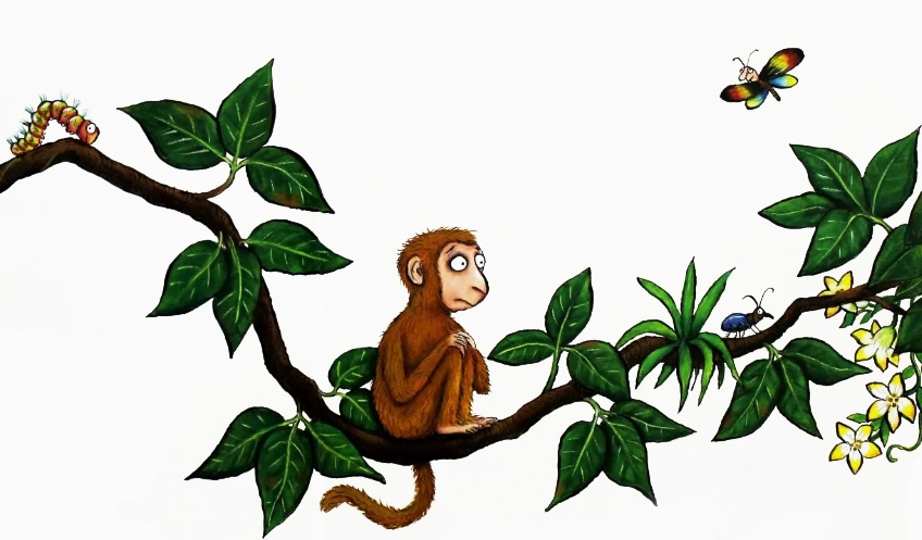 Озадаченная обезьянка смотрит на куст, облюбованный детьми мотылька – гусеницами. Задумался и Петя, а вот Федя сразу нашел, что сказать: «Чевяяяк». Червяк-червяк-червяк – пальчик прыгал от гусеницы к гусенице – ребенок был полностью погружен в книгу.