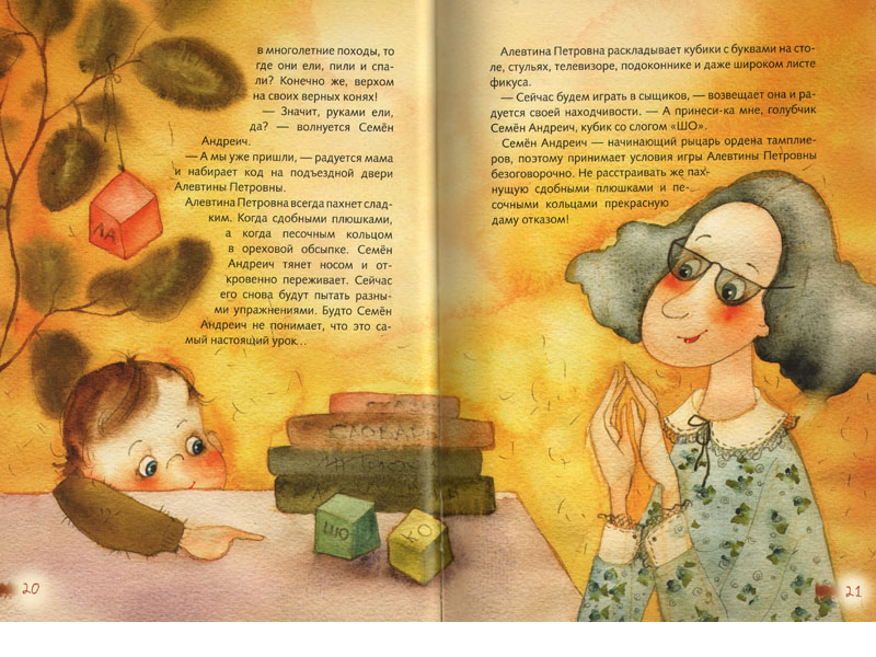 А вот Семён Андреич занимается с логопедом (мальчик не в ладах с шипящими). Логопед дарит ему шоколадку и просит произнести это жуткое слово: шшшоколад. Тот отказывается. А вечером мама находит рядом с шоколадкой надпись: