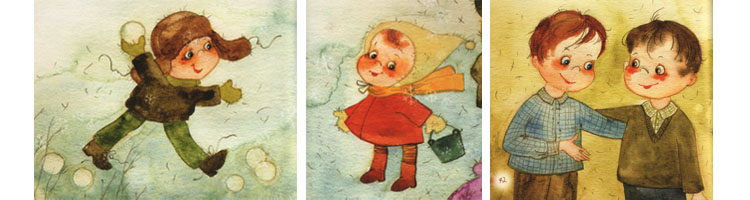 Эта небольшая книжка больше всего напоминает детский фотоальбом. Такие есть почти во всех семьях: Маша на прогулке, Паша на море, Костя в детском саду, Эльвира у бабушки на даче. Туда обычно помещают самые простые, повседневные, и потому невероятно дорогие и трогательные картинки, на которых дети играют, копаются в песке, прыгают, обнимаются, а самое главное – улыбаются.