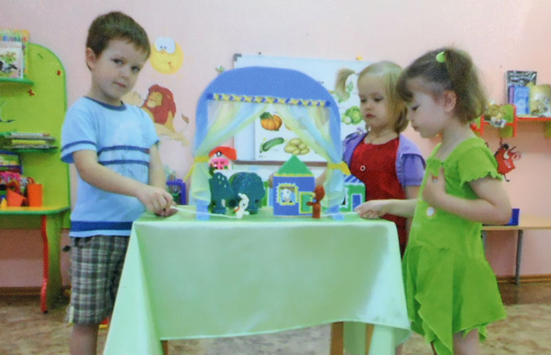 Дети передвигают персонажей за проволоку, которая прикреплена сзади.