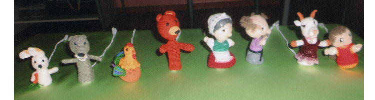 Ко всем персонажам сзади прикреплена проволока, обмотанная нитками. За эту проволоку очень удобно передвигать персонажей во время действия.