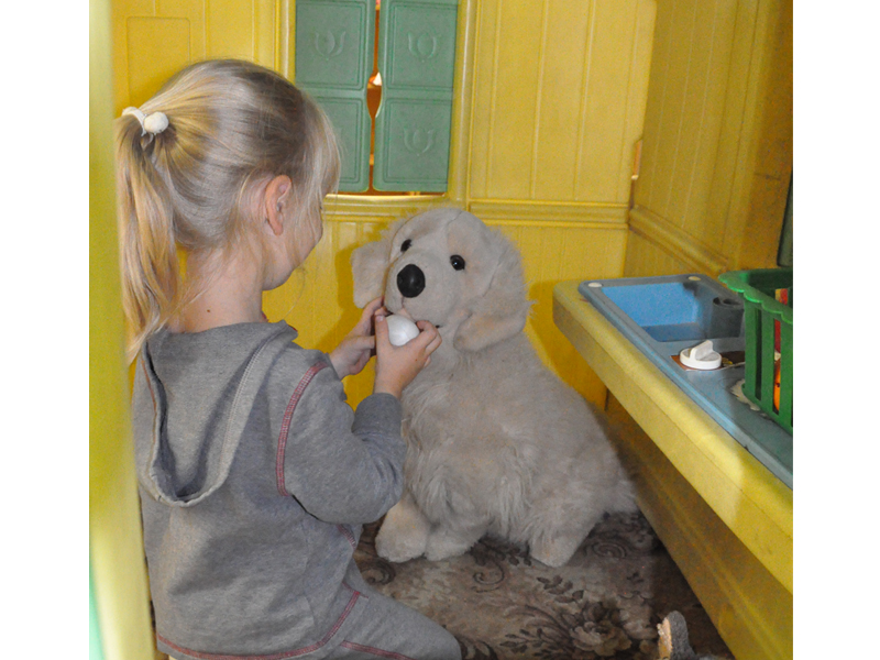 Но сложные игры и интересные сюжеты возникают не как социальная калька: пришел – увидел – поиграл. Из реальной жизни (а также из телевизионной и компьютерной) дети черпают темы, роли, отдельные действия, может, быть, двух-трехходовую последовательность действий: «врач» послушал больного трубочкой, велел ему открыть рот и сделал укол. «Мама» сварила суп из цветочков, налила из кастрюльки в тарелочку и покормила дочку. Однако это еще нельзя назвать сюжетом. Безусловно, мы радуемся, обнаруживая, что малыш кормит свои игрушки и что-то при этом приговаривает. Мы отмечаем, что он использует для этого игрушечную посуду или предметы-заменители, т.е. создает «образ» известного ему действия, заменяет его знаком. Игрушечная посуда – это «знак» настоящей посуды, то, что по сути посудой не является, а только ее обозначает. Для двухлетки это важное достижение.