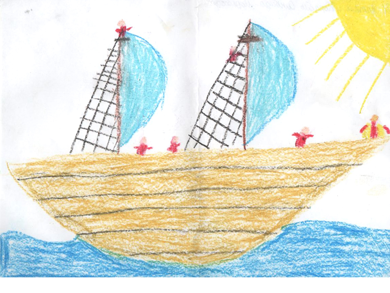Это «Приключения Синдбада-морехода». Мне нравится Синдбад-мореход, это мой любимый герой, он храбрый, находчивый, умный и много путешествует. Моя любимая история рассказывает о том, как Синдбад-мореход отправился на остров и увидел там яйцо птицы Рок. Друзья Синдбада плохо себя вели, и яйцо разбилось, и когда птица Рок прилетела, то увидела, что ее птенец разрублен на мелкие кусочки. Птица, конечно, разозлилась. Мне было очень жалко птенца, «рокчонка» этого. Я думаю, что эта история о том, как надо сначала думать, а потом делать. А без думания делать ничего не надо.