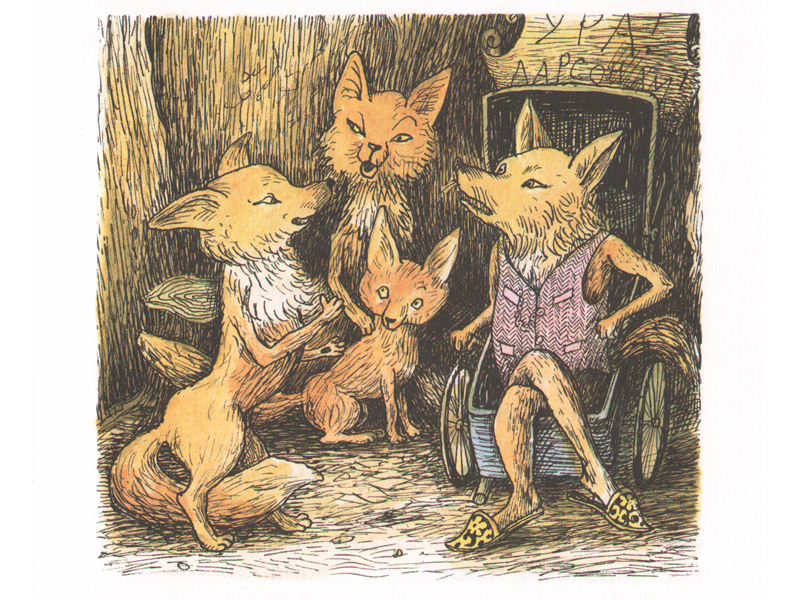 А как получается взрослеть у нашего сына или дочки – повод подумать с ними вместе и поговорить, читая сказку вслух. Ведь каждый ребенок на исходе детства, в преддверии отрочества, тоже должен сам принять решение: следовать ему за семейной традицией, какой бы она ни была, или пускаться в одиночное плавание по жизни, на свой страх и риск, искать и осуществлять свой смысл жизни – и при этом сохранять любовь к тем, кто его вырастил. И, может быть, вечерние разговоры о приключениях лисенка – одна из последних возможностей поговорить по душам до того как наш милый малыш начнет отстраняться, а потом и отдаляться надолго. Как ведет себя лисенок, оставаясь один на один со стремительно меняющимися обстоятельствами? Как он относится к новому, неизвестному, опасному? Не в этой ли его открытости неизвестному проявляется его самостоятельность, взросление? Об этом и о многом другом стоит поговорить с детьми.