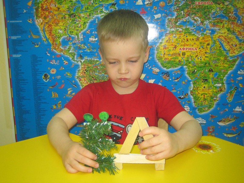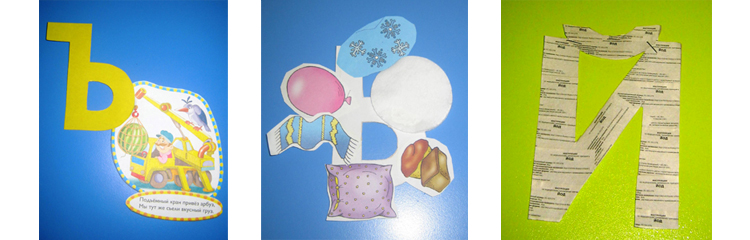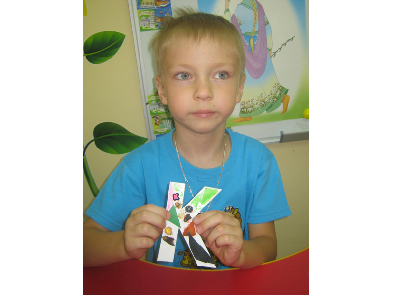 Сначала каждый ребенок выбирал из трех своих букв одну – самую любимую. Почти все выбранные буквы оказались «именными»: Андрей выбрал «А», Кирилл Б. выбрал «Б», Маша – «М», Милана – «О» (ее маму зовут Ольга), Саша З. – «З», Ярик – «Я», Никита – «К» (маму зовут Катерина). Остальные буквы были выбраны из-за интересного покрытия: «У» покрыта круглыми угольками, «Ф» обклеена фантиками, «Ё» сделана из еловой ветки, «П» мерцает пуговками.