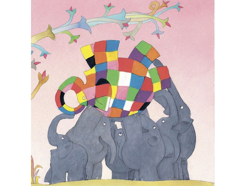 Книга Дэвида Макки начинается так: «Жило-было стадо слонов. Слоны молодые и пожилые, высокие, толстые и худые. Слоны такие, сякие, пятые и десятые – все разные, но все счастливые и все одного цвета». Для ребенка это важное открытие: даже если ты кажешься таким, как все, ты все равно особенный. На картинке мы видим множество обычных серых слонов, которые отличаются друг от друга телосложением, формой ушей и хоботов, возрастом, ростом, «выражением лица» и, наверное, характером. И все они счастливы!