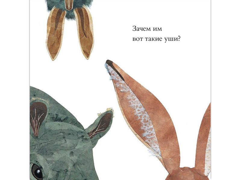 Знакомство ребенка с животными (домашние любимцы не в счет) обычно происходит так: с помощью книг и игрушек или на экскурсии в зоопарке мы рассказываем ему, как выглядит животное, где оно живет, чем питается и т.д. Авторы книги «Про хвосты, носы и уши» Стив Дженкинс и Робин Пейдж предлагают делать это совсем по-другому. Из этой книги читатель с удивлением узнает, что животные могут очень неожиданно использовать разные части своего тела: слушать ногами, смотреть по сторонам ушами, отбрасывать свой собственный хвост. Замечательный ход, чтобы подогреть детское любопытство. А интерес к животному миру и восхищение перед изобретательностью природы придут сами собой.