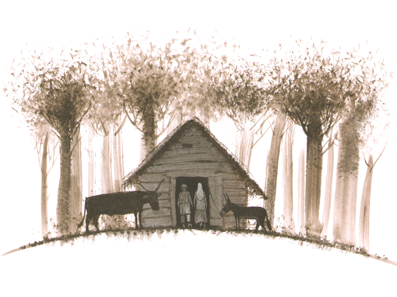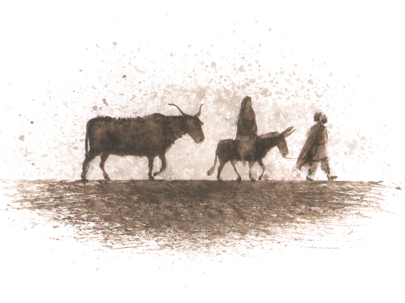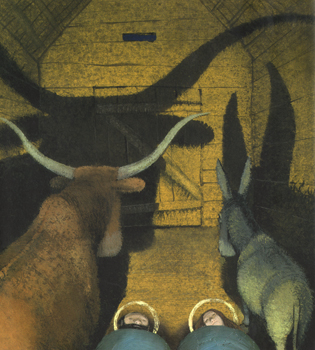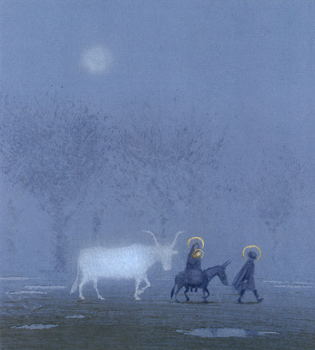 Жюль Сюпервьель сохраняет все традиционные сюжетные повороты рождественской истории: тут есть и само рождение, и поклонение волхвов, и приход ангелов, и срочный отъезд в Египет. Но все эти события мы видим глазами зверей – вола и осла. «Поднявшись на ноги, вол обнаружил, что в яслях спит голенький ребеночек, и стал обогревать его своим дыханием, стараясь ничего не забыть из увиденного. Улыбаясь, Дева поблагодарила его взглядом».