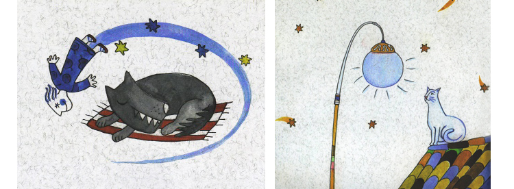 В книгу вошло семь сказок, при этом было сделано много иллюстраций, так что получилась полноценная книжка-картинка. Мы с издателем решили взять не обычную белую бумагу, а с ворсинками. И эта книга не затянута в матовую пленку – у нее бумажный переплет. Странички не мелованные – использована хорошая офсетная бумага, при этом картинки все равно получились яркие. У нас вышла такая спокойная бумажная книжка, с которой будет уютно вечером и которую будет приятно читать перед сном.