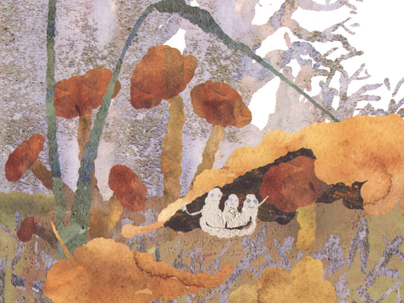 На странице с камышами дети радостно начали изображать удивление камышей. Для моих детей «озвучивать» иллюстрации – это в первую очередь языковая практика, ведь камыши говорят только по-русски. Варя говорит за одного: «Ничего себе!», а Алик за других: «ООО!», «Давай жить с нами!». Заодно выяснили, что такое «камыши».