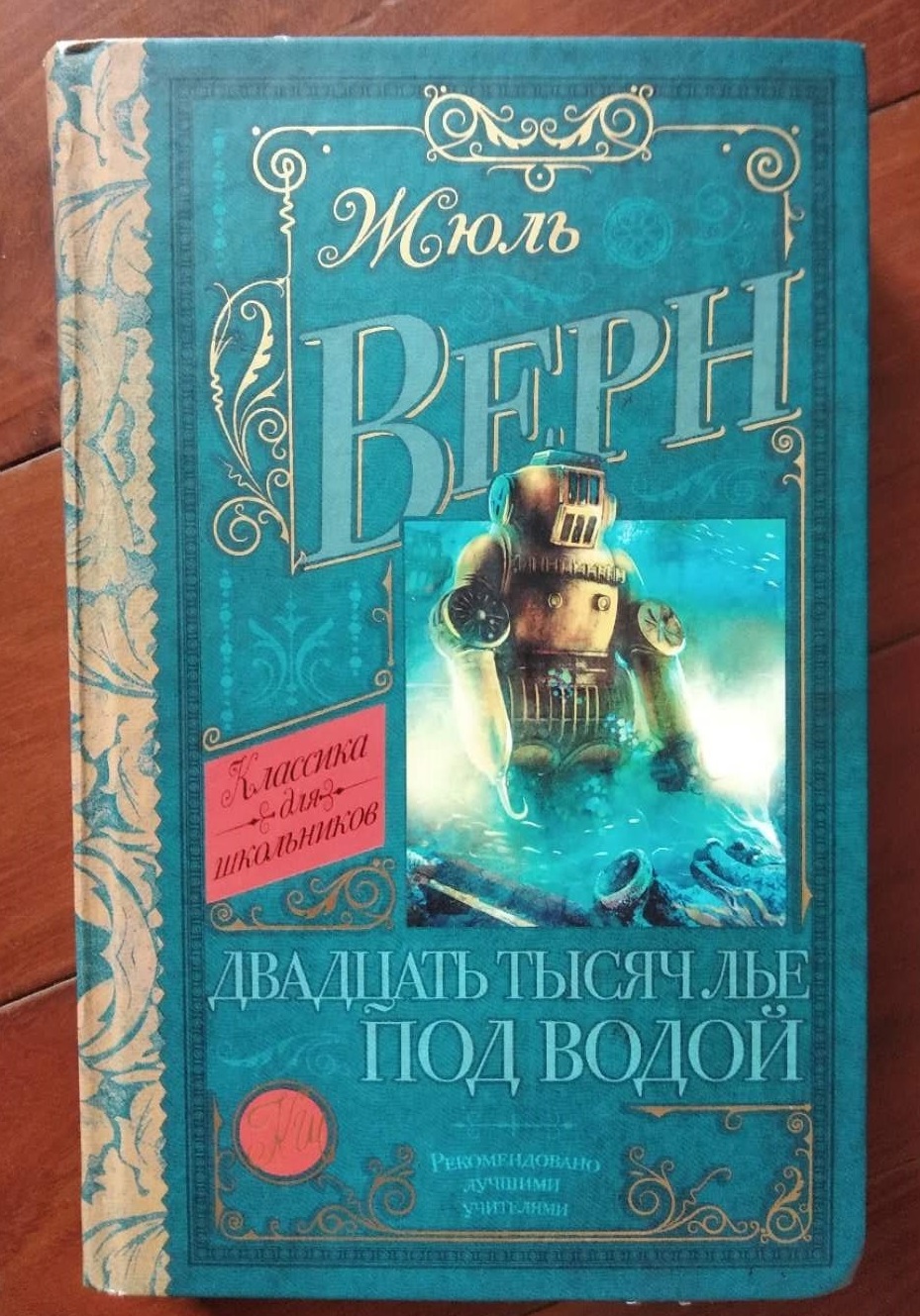 “20.000 лье под водой” - один из самых популярных и известных романов французского писателя Жюля Габриеля Верна (1828-1905). Он также написал многие другие романы, которые рассказывают о необычных и фантастических случаях и приключениях. Например, “Путешествие к центру Земли”, “Вокруг света за 80 дней”, “Таинственный остров”, “Пятнадцатилетний капитан” и др. По книге “20.000 лье под водой” сняты многие фильмы и мультфильмы, из которых у некоторых странные названия. Одно из самых странных - американский фильм 2007 года “30.000 лье под водой” (“30,000 Leagues Under the Sea”). По моим ощущениям, практически все экранизации недостаточно продуманы, и их создатели, кажется, читали только аннотацию на задней обложке книги, и то не тщательно, изменив всяческим задумкам месье Верна. В фильме “30.000 лье под водой” профессора Пьера Аронакса называют Майклом, а в других фильмах герои имеют характеры, не соответствующие написанным автором книги. Впрочем, экранизации практически всегда не дотягивают до литературных оригиналов. Поэтому я рекомендую сначала прочитать книгу, а потом критиковать режиссеров.
