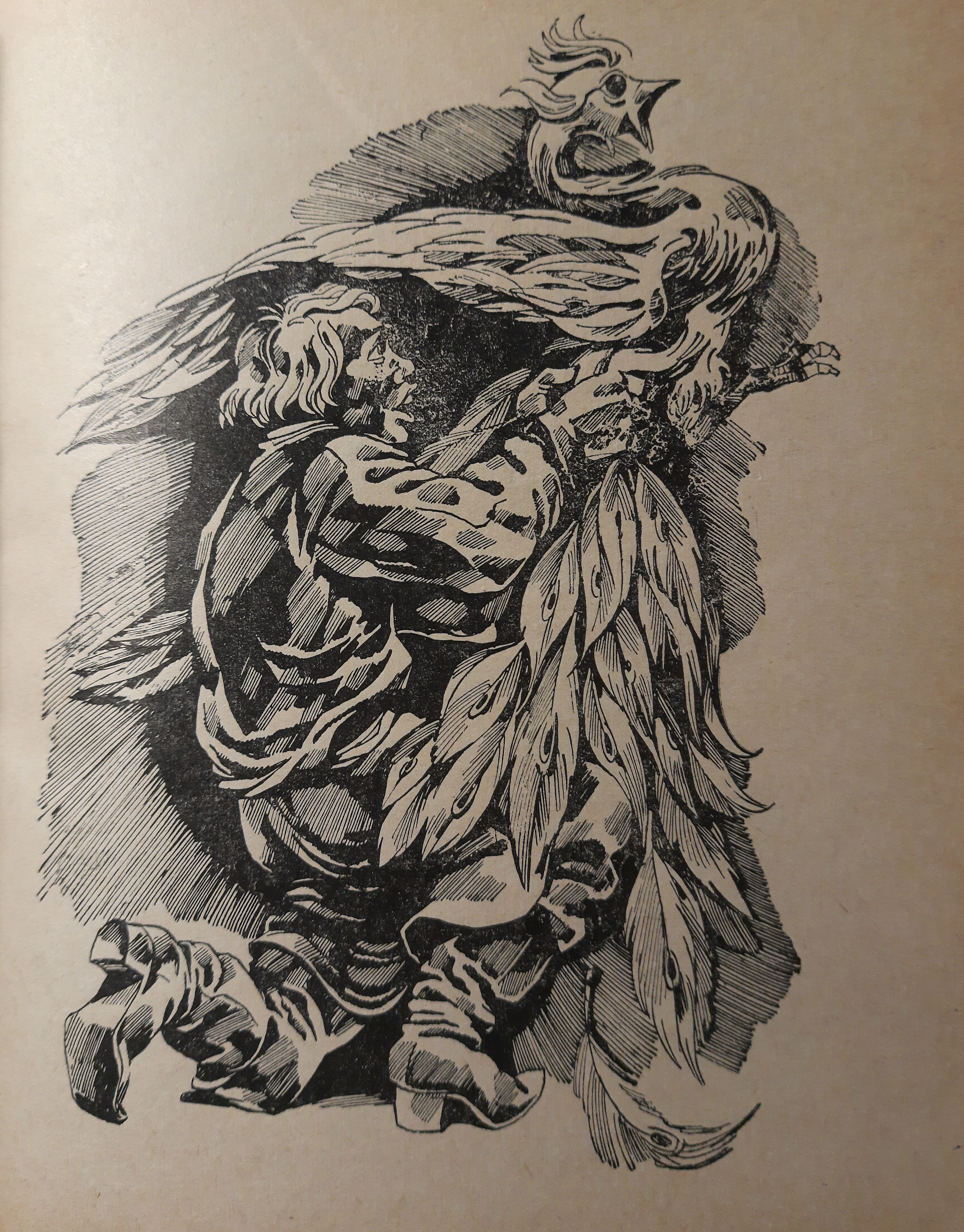 На одной из страниц изображена Жар – птица к одному из эпизодов сказки: