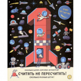Эта книга сочетает в себе и книжку для обучения счету, и виммельбух. «Счетная» составляющая устроена привычно – идет от единицы к большим цифрам и числам. Правда, в отличие от многих других таких книг, останавливается она не на десяти, а на ста. Каждой цифре или числу посвящен «тематический» разворот: сцена со стройки, из Восточного экспресса, с городской ярмарки. На рисунке надо выискивать фигурки – как во всяком виммельбухе – и одновременно считать их. Чем дальше, тем картинка более сложная. На странице с единицей – крупная фигура акробата на моноцикле, с тройкой – ряд сюжетов из сказок с тремя героями (поросятами, медведями, козликами). Дальше иллюстрации уже совсем как из виммельбуха. Например, на развороте с шестеркой изображен огромный замок, и внутри него надо найти шесть рыцарей, щитов и прочих «средневековых» вещей и героев. В следующих десятках задания еще более усложнены: нужно не просто насчитать какое-то количество предметов, но досчитать до этого числа. Например, на развороте с фермой предлагается искать одно пугало, двух кошек, трех лошадей и так далее до 15.